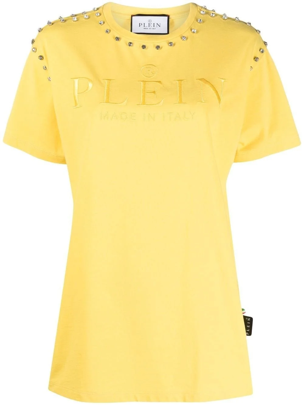 crystal-embellished logo-embroidered T-shirt yellow cotton embroidered logo to the front crystal embellishment round neck short sleeves Made in Italy Composition Cotton 100% Washing instructions Hand Wash