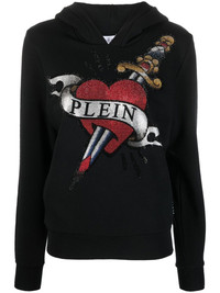 crystal-embellished logo hoodie black cotton blend glass crystal embellishment logo print to the front logo print to the rear logo-embossed patch to the rear classic hood elasticated waistband fitted-cuff sleeves Imported Composition glass 100%, Cotton 88%, Polyester 12% Washing instructions Hand Wash