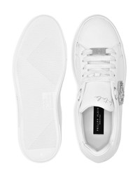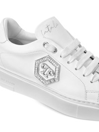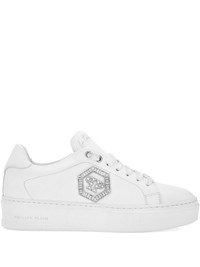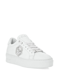 crystal-embellished low-top sneakers Highlights - White - Leather upper - Crystal-embellished logo - Lace-up fastening - Flat sole - Low-top design Made in Italy Composition Outer: Calf Leather 100%, Zinc 50%, glass 50% Lining: Sheepskin 100%, Calf Leather 100% Sole: Synthetic Rubber 100%