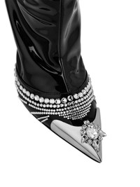 crystal-embellished patent leather boots Highlights - Black - Calf leather - Patent finish - Crystal embellishment - Pointed toe - Silver-tone hardware - Metal toecap - Slip-on style - Knee-high - High stiletto heel - Leather sole Made in Italy Composition Sole: Calf Leather 100% Outer: Patent Calf Leather 100% Lining: Calf Leather 100%