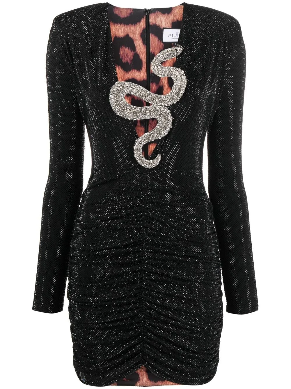 crystal-embellished ruched minidress Highlights - Jet black - Stretch-design - Applique detailing - Ruched detailing - Crystal embellishment - Rhinestone embellishment - Plunging v-neck - Shoulder pads - Long sleeves - Concealed rear zip fastening - High-low hem - Thigh-length Imported Composition Polyester 95%, Spandex/Elastane 5% SIZE & FIT Model measurements Height 5 ft 10 in(1.78 m) Bust/Chest 31.49 in(80 cm) Hips 37 in(94 cm) Waist 23.62 in(60 cm) FittingInformation Designed for a close fit throughout Made from a heavyweight stretch fabric, this piece offers elasticity and flexibility when worn This piece fits true to size – take your usual size Washing instructions Hand Wash