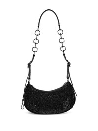 crystal-embellished shoulder bag Highlights - Black - Calf suede - Applique logo - Crystal embellishment - Adjustable leather and chain-link shoulder strap - Top zip fastening - Main compartment - Internal zip-fastening pocket - Contrast lining Made in Italy Composition Outer: Calf Suede 100%, glass 100%