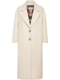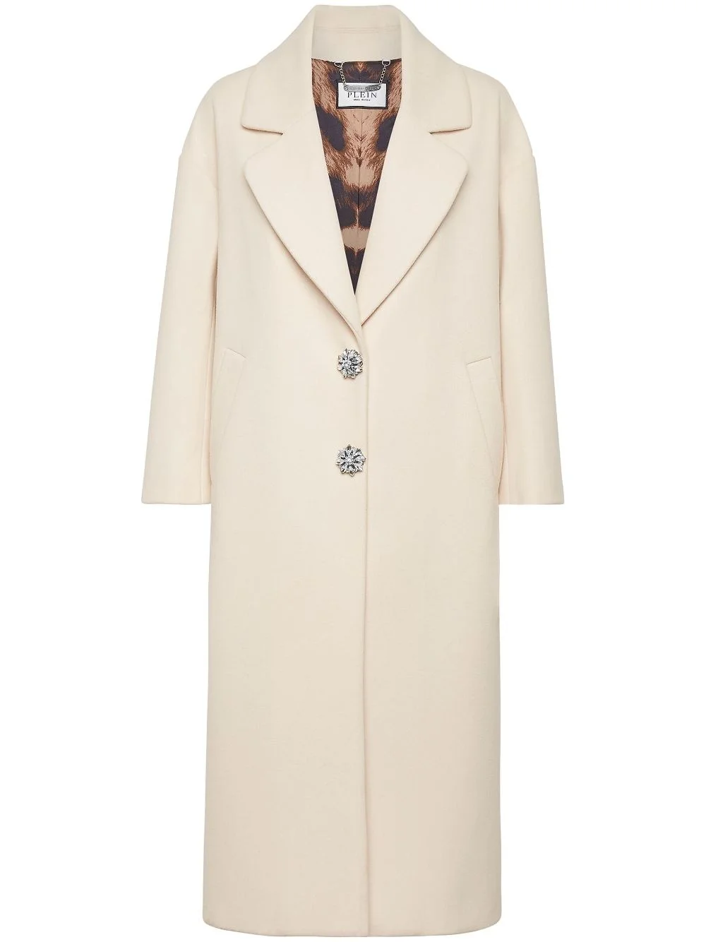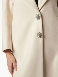 crystal-embroidered skull coat Highlights - Almond beige - Skull embroidery to the rear - Crystal embellishment - Wide notch lapels - Crystal-embellished buttons - Long sleeves - Button fastening - Straight hem Made in Italy Composition Polyester 57%, Acrylic 39%, Wool 4%
