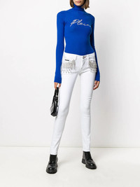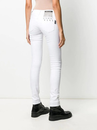 crystal-fringe slim-fit jeans white cotton-blend front button and zip fastening belt loops classic five pockets crystal embellishment fringe detailing logo patch to the rear Imported Composition Outer: Cotton 92%, Polyester 6%, Spandex/Elastane 2% Lining: Polyester 65%, Cotton 35% SIZE & FIT Model measurements Height 5 ft 11 in(1.8 m) Bust/Chest 29.92 in(76 cm) Hips 34.64 in(88 cm) Waist 24.01 in(61 cm) FittingInformation Designed for a skinny fit, these jeans offer a close fit throughout Constructed from stretch denim, this piece offers a stretch fit with durability This piece fits true to size – take your usual size Washing instructions Do Not Wash/Do Not Dry Clean