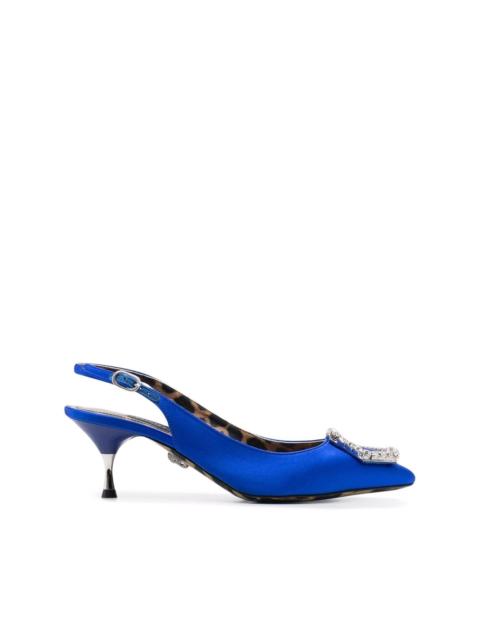 Crystal Hexagon pointed pumps black leather crystal embellishment pointed toe buckle-fastening ankle strap branded insole mid heel Made in Italy Composition Silk 100% SIZE & FIT Measurement HEEL 2.55 in(6.5 cm)