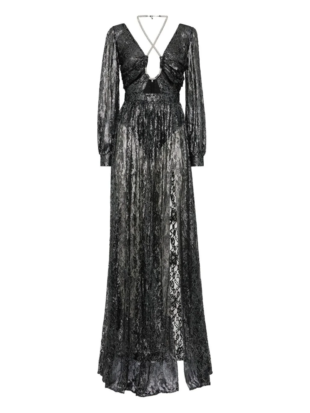 crystal lace maxi dress Highlights - Black - Lobster-claw fastening - Concealed rear hook and zip fastening - Partial lining - Open back Made in Italy Composition Polyamide 68%, Viscose 32%