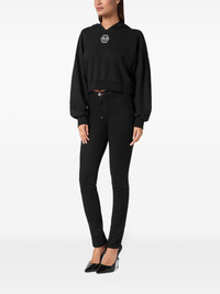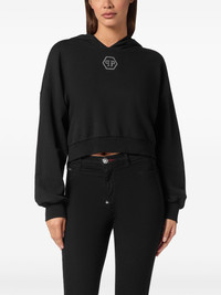 crystal-logo cropped hoodie Highlights - Black - Cotton blend - Crystal logo embellishment - Classic hood - Long sleeves - Ribbed cuffs and hem - Straight hem Imported Composition Glass Fiber 100%, Cotton 95%, Spandex/Elastane 5%