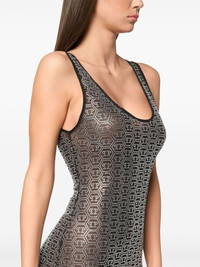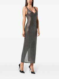 crystal-monogram maxi dress Highlights - Black - Stretch-design - Tulle netting - Monogram pattern - Crystal embellishment - Slip-on style - Scoop neck - Sleeveless - Rear slit - Straight hem - Long length Imported Composition glass 100%, Polyester 66%, Spandex/Elastane 34%
