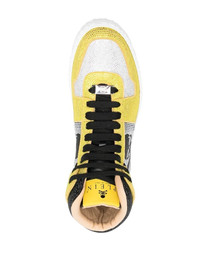 Crystal Notorious high-top sneakers yellow/black calf leather ankle-length crystal embellishment logo embellishment skull charm round toe front lace-up fastening flat rubber sole Made in Italy Composition Leather 100% SIZE & FIT Measurement HEEL 1.57 in(4 cm) Sole height 0.98 in(2.5 cm) HEIGHT 4.33 in(11 cm)