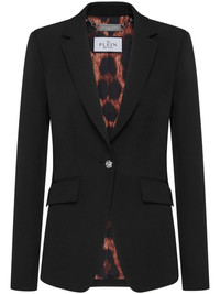 crystal-skull blazer Highlights - Black - Skull stud embellishment - Notched lapels - Front button fastening - Two side flap pockets - Long sleeves - Straight hem Made in Italy Composition Outer: Polyester 88%, Elastane 12% Lining: Polyester 100%