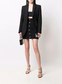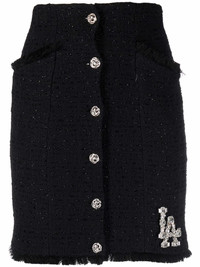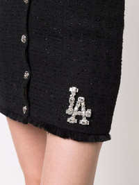 Crystal Skull tweed short skirt black cotton blend skull embroidery to the front skull charm high waist front button fastening frayed hem side patch pockets Made in Italy Composition Outer: Cotton 87%, Polyamide 13% Lining: Polyester 100% SIZE & FIT Model measurements Height 5 ft 10 in(1.78 m) Bust/Chest 31.49 in(80 cm) Hips 36.22 in(92 cm) Waist 25.59 in(65 cm) FittingInformation This piece fits true to size. We recommend you get your regular size Cut for a slim fit Made with a mid-weight non-stretch fabric