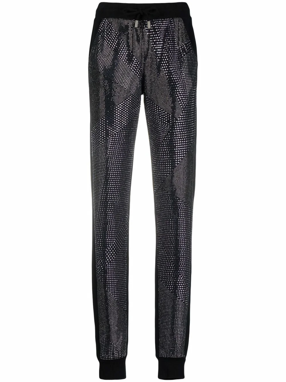 crystal slim-cut track pants black cotton slim cut crystal embellishment elasticated drawstring waistband elasticated ankles straight leg Imported Composition Cotton 100% SIZE & FIT Model measurements Height 5 ft 11 in(1.8 m) Bust/Chest 33.07 in(84 cm) Hips 37.4 in(95 cm) Waist 25.19 in(64 cm) Washing instructions Dry Clean Only