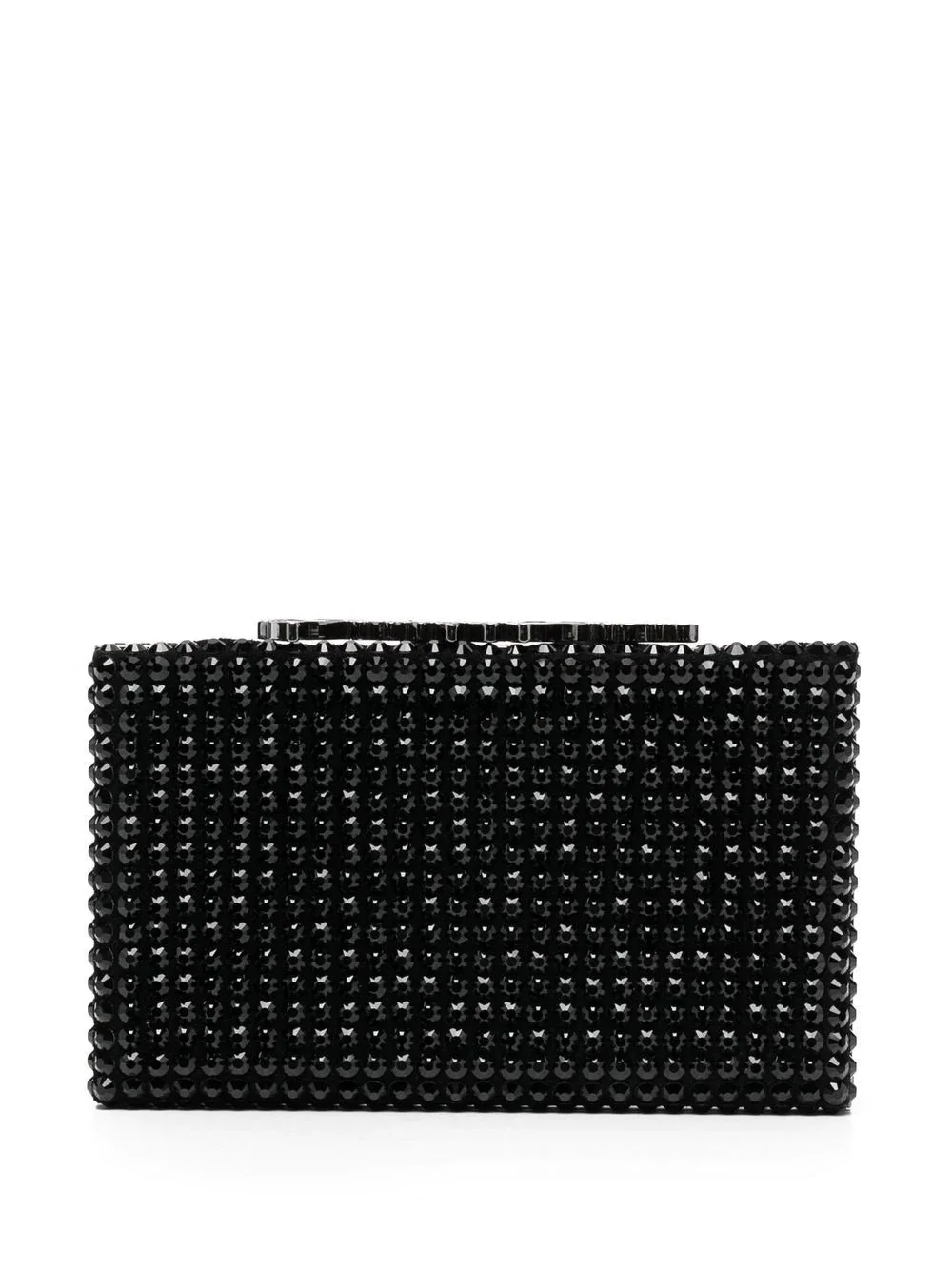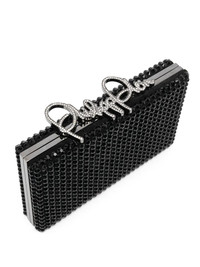 crystal-studded snap clutch bag black crystal embellishment silver-tone logo lettering snap-lock closure main compartment jet black Made in Italy Composition Outer: Calf Leather 100% SIZE & FIT Model measurements Height 5 ft 10 in(1.77 m) Bust/Chest 33.46 in(85 cm) Hips 35.43 in(90 cm) Waist 26.77 in(68 cm) Measurement DEPTH 1.57 in(4 cm) HEIGHT 4.72 in(12 cm) WIDTH 7.87 in(20 cm)