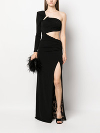 cut-out long dress black flared off-shoulder cut-out detailing long sleeves front slit long length Imported Composition Cotton 95%, Spandex/Elastane 5% SIZE & FIT Model measurements Height 5 ft 10 in(1.79 m) Bust/Chest 32.67 in(83 cm) Hips 34.25 in(87 cm) Waist 24.4 in(62 cm) FittingInformation This piece fits true to size. We recommend you get your regular size Designed for a close fit at the bust, waist and hips Made with a mid-weight stretch fabric Washing instructions Hand Wash