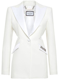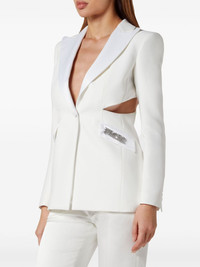 cut-out satin blazer Highlights - White - Satin finish - Cut-out detailing - Logo embellishment - Crystal embellishment - Peak lapels - Front button fastening - Shoulder pads - Long sleeves - Buttoned cuffs - Two side flap pockets - Straight hem Made in Italy Composition Satin 100%