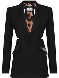 logo-plaque cut-out blazer Highlights - Black - Satin finish - Logo plaque - Cut-out detailing - Front button fastening - Peak lapels - Long sleeves - Buttoned cuffs - Two front flap pockets - Leopard print lining - Straight hem Made in Italy Composition Polyester 100%