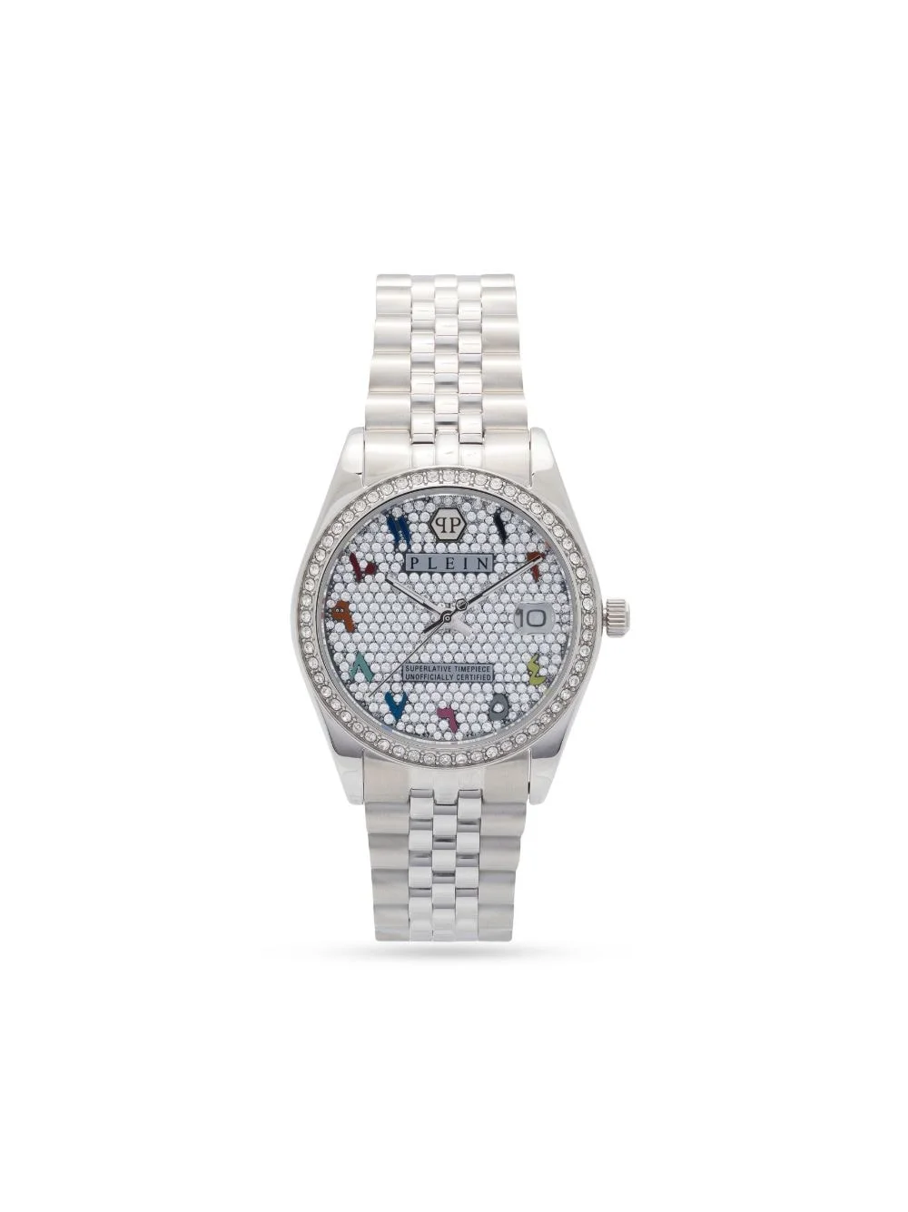 Date Superlative 34mm Highlights - Silver-tone - Stainless steel - Arabic dial - Polished effect - Crystal embellishment - Rectangle frame - This item comes with a standard one-year warranty from the boutique. Imported SIZE & FIT Model measurements Height 5 ft 10 in(1.79 m) Bust/Chest 32.67 in(83 cm) Hips 34.25 in(87 cm) Waist 24.4 in(62 cm) Measurement CIRCUMFERENCE 7.75 in(19.7 cm) DIAMETER 1.29 in(3.3 cm) Thickness 0.39 in(1 cm) WIDTH 0.66 in(1.7 cm)
