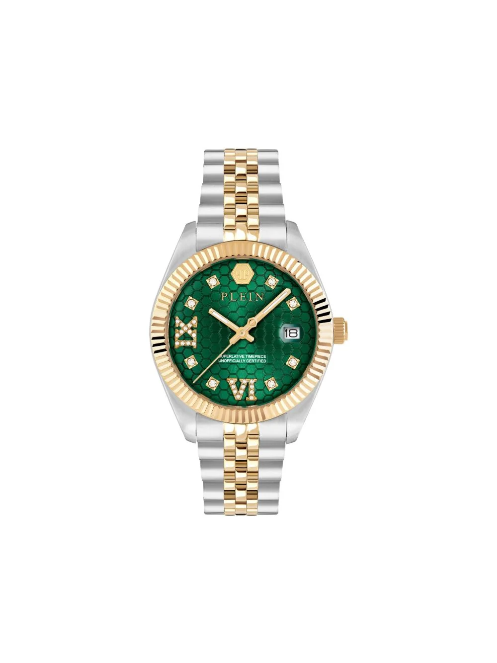 Date Superlative 41mm Highlights - Green dial - Round case shape - 41mm case size - Date window - Crystal hour markers - Fluted bezel - Quartz movement - Scew-in crown - This item comes with a standard one-year warranty from the boutique. Made in Italy SIZE & FIT Measurement DIAMETER 1.61 in(4.1 cm) Thickness 0.38 in(0.9 cm)