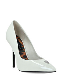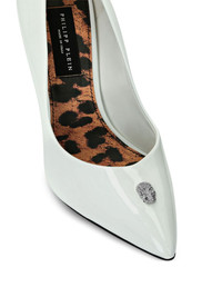Decollete pumps Highlights - White - Calf leather - Patent finish - Skull stud detailing - Pointed toe - High stiletto heel - Branded insole - Leather outsole Made in Italy Composition Sole: Calf Leather 100% Lining: Calf Leather 100% Outer: Calf Leather 100%
