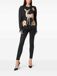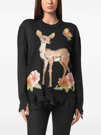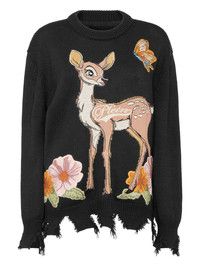 deer-print sweater Highlights - Black - Frayed hem - Deer print - Round neck Made in Italy Composition Fabric 100% Washing instructions Read Manufacturer Guidelines