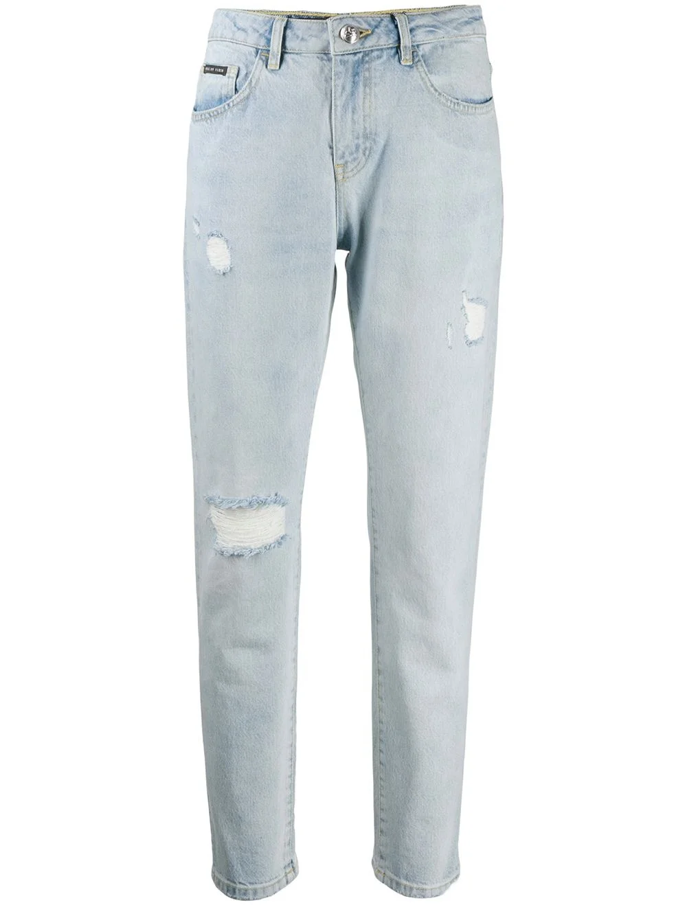 distressed straight-leg jeans Characterised by the spirit of Rock’n’roll, Philipp Plein makes clothing for those that strive to be above standard. Crafted from blue cotton, these jeans feature a button fastening, a waistband with belt loops, a five pocket design, a straight leg and a distressed finish. Imported Composition Outer: Cotton 100% Lining: Polyester 65%, Cotton 35% SIZE & FIT Model measurements Height 5 ft 10 in(1.77 m) Bust/Chest 31.49 in(80 cm) Hips 33.46 in(85 cm) Waist 22.83 in(58 cm) FittingInformation This piece fits true to size. We recommend you get your regular size Cut for a loose fit Made with a mid-weight non-stretch fabric Washing instructions Machine Wash