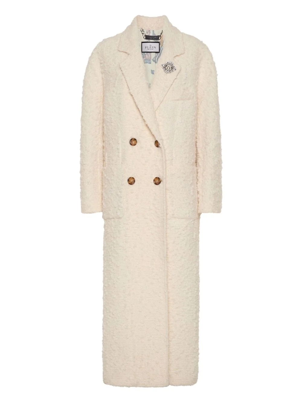double-breasted coat Highlights - Light beige - Double-breasted button fastening - Two front patch pockets - Boucle construction - Long sleeves Made in Italy Composition Fabric 100% Washing instructions Read Manufacturer Guidelines