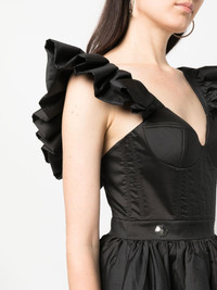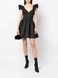 ruffled mini dress black silk ruffled detailing corset style sweetheart neck sleeveless A-line skirt thigh-length Imported Composition Outer: Silk 100% Lining: Polyester 100% SIZE & FIT Model measurements Height 5 ft 10 in(1.78 m) Bust/Chest 31.49 in(80 cm) Hips 36.22 in(92 cm) Waist 25.59 in(65 cm) FittingInformation Designed for a close fit at the chest and waist with a loose fit at the hip Made from a midweight non-stretch fabric This piece fits true to size – take your usual size Washing instructions Dry Clean Only