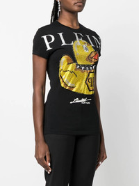 Duck Stones round-neck T-shirt black cotton cartoon print logo print to the front round neck short sleeves straight hem Imported Composition Cotton 100% SIZE & FIT Model measurements Height 5 ft 10 in(1.77 m) Bust/Chest 34.64 in(88 cm) Hips 35.43 in(90 cm) Waist 24.8 in(63 cm) FittingInformation This piece fits true to size. We recommend you get your regular size Cut for a slim fit Made with a mid-weight fabric Washing instructions Hand Wash