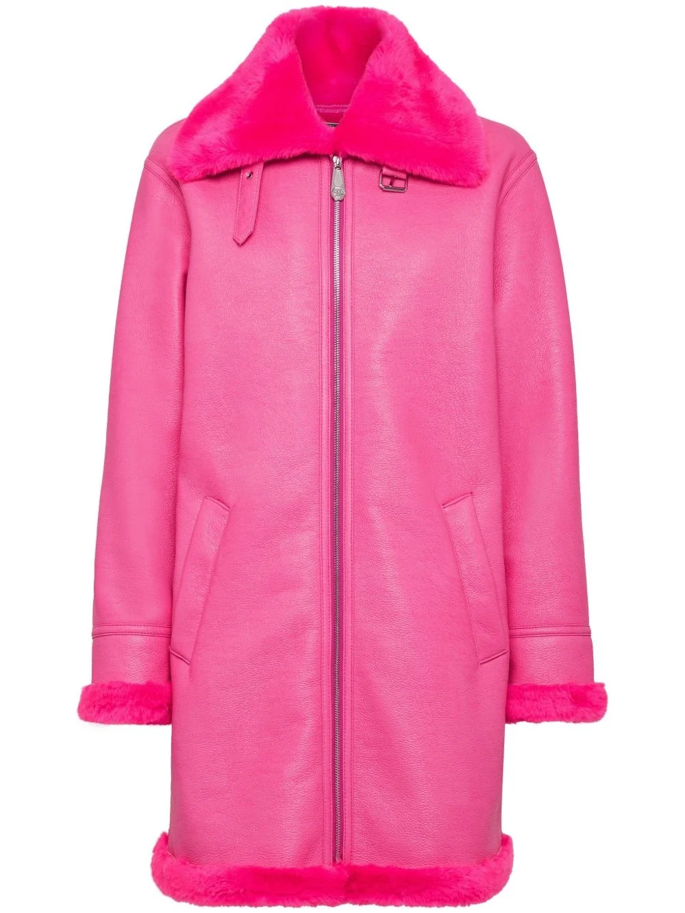 Eco Mutton Aviator Skull&Bones coat Highlights - Fuchsia pink - Front zip fastening - Two side welt pockets - Faux-fur trim Imported Composition Fabric 100%