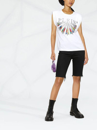 embellished logo-print T-shirt Philipp Plein sits their logo atop a star graphic print at the chest of this sleeveless T-shirt, adding to the striking design through the tonal crystal embellishments and padded shoulder silhouette. Made in Italy Composition Cotton 100% SIZE & FIT Model measurements Height 5 ft 10 in(1.78 m) Bust/Chest 30.31 in(77 cm) Hips 36.61 in(93 cm) Waist 24.8 in(63 cm) FittingInformation This piece fits true to size. We recommend you get your regular size Cut for a loose fit Made with a mid-weight fabric Washing instructions Hand Wash
