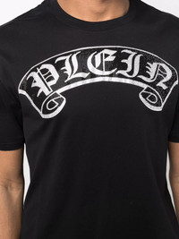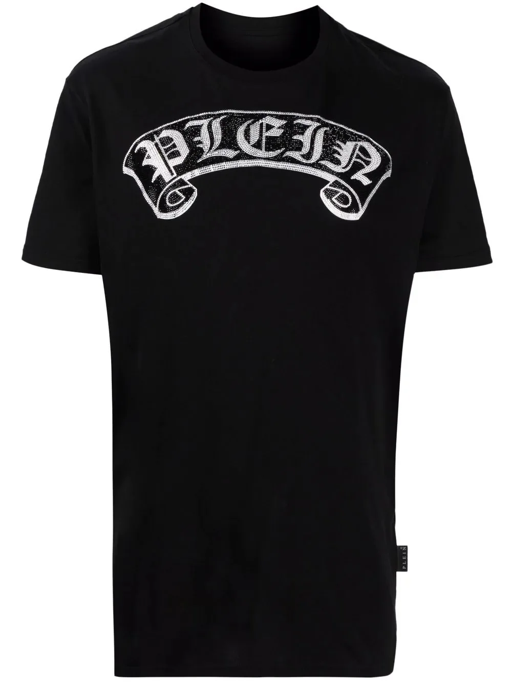 embellished-logo T-shirt Crafted from soft black cotton, Philipp Plein's crew neck T-shirt is detailed with a rhinestone embellished script logo motif across the chest. In a unisex design, it features the brand's signature silver-tone logo plaque to the rear neckline. Imported Composition Cotton 100% SIZE & FIT Model measurements Height 5 ft 10 in(1.79 m) Bust/Chest 31.49 in(80 cm) Hips 35.03 in(89 cm) Waist 24.4 in(62 cm) FittingInformation This piece is unisex. Please take care when selecting your size Cut for a relaxed fit for both men and women Made with a mid-weight fabric