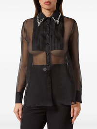 embellished long-sleeve shirt Highlights - Black - Transparent design - Crystal embellishment - Pleat detailing - Straight-point collar - Long sleeves - Buttoned cuffs - Curved hem Made in Italy Composition Outer: Silk 100%