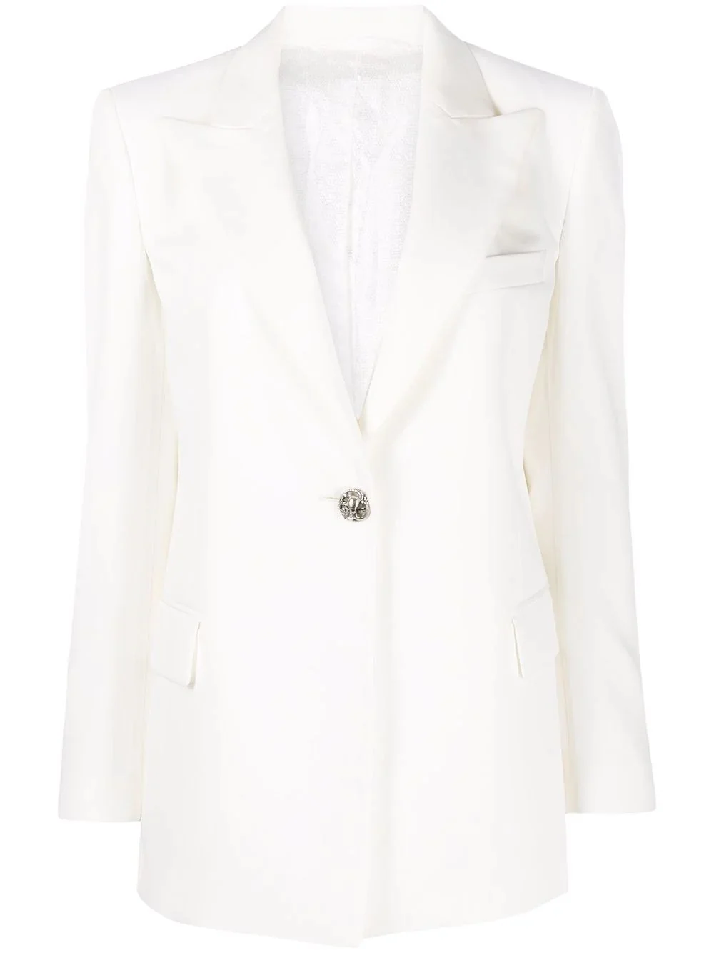 embellished single-breasted blazer Exhibiting Philipp Plein's daring aesthetic, this single-breasted white blazer is embellished with a line of crystals skulls to its rear. Made in Italy Composition Outer: Polyester 88%, Spandex/Elastane 12% Lining: Viscose 100% SIZE & FIT Model measurements Height 5 ft 11 in(1.8 m) Bust/Chest 31.49 in(80 cm) Hips 36.61 in(93 cm) Waist 24.4 in(62 cm) Washing instructions Dry Clean Only