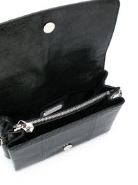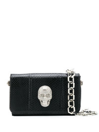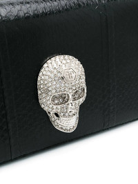embellished skull tote bag Black goatskin/Elaphe carinata embellished skull tote bag from Philipp Plein featuring a chain shoulder strap, an embossed crocodile effect, a foldover top with snap closure, an internal zipped pocket, an internal logo plaque and silver-tone hardware. This item comes from our partner boutiques in a variety of countries and cannot be shipped outside its region (either EU, US, UAE or Japan). Please check the country of origin in the Shipping & Free Returns tab or your Shopping Bag to make sure it can be delivered to your location. Made in Italy Composition Outer: Elaphe Carinata 100% Inner: Goat Skin 100% Filling: Polyamide 50%, Polyurethane 50% Lining: Polyester 100% SIZE & FIT Measurement DEPTH 2.75 in(7 cm) HANDLE 11.02 in(28 cm) HEIGHT 5.51 in(14 cm) WIDTH 8.66 in(22 cm)