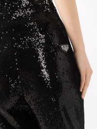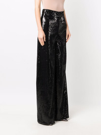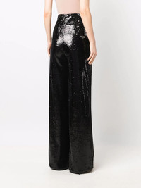 embellished wide-leg trousers black sequin embellishment wide leg high waist Made in Italy Composition Outer: Polyester 100% Lining: Polyester 100% SIZE & FIT Model measurements Height 5 ft 10 in(1.78 m) Bust/Chest 31.49 in(80 cm) Hips 36.22 in(92 cm) Waist 25.59 in(65 cm) FittingInformation This piece fits true to size. We recommend you get your regular size Designed to be fitted at the waist and hips, loose over the leg Made with a mid-weight non-stretch fabric Washing instructions Dry Clean Only