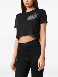 embroidered short-sleeve t-shirt Highlights - Black - Short sleeves - Embroidered logo - Crew neck - Cropped hem Imported Composition Polyester 100%, Modal 46%, Cotton 46%, Spandex/Elastane 8%