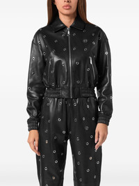 eyelet-detailing bomber jacket Highlights - Black - Front zip fastening - Two side zip-fastening pockets - Logo patch at the chest - Classic collar Imported Composition Leather 100%