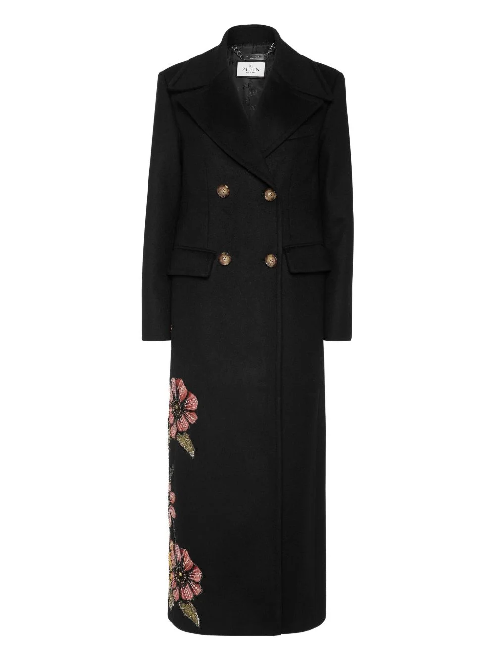 Fairy coat Highlights - Black - Double-breasted button fastening - Two front flap pockets - Crystal embellishment - Logo-jacquard lining Made in Italy Composition Fabric 100% Washing instructions Read Manufacturer Guidelines