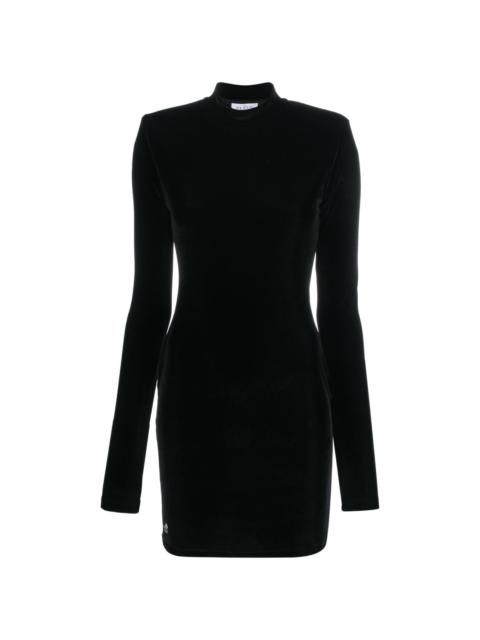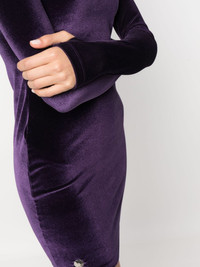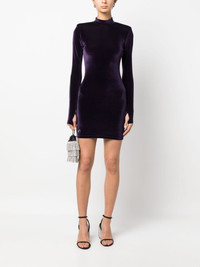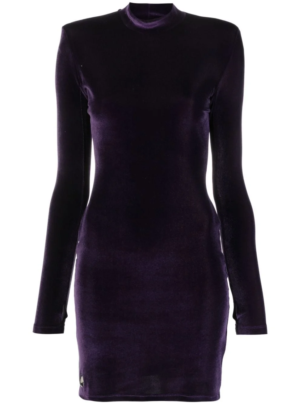 logo-plaque velvet mini dress Highlights - Plum purple - Velour - Mock neck - Long sleeves - Straight hem - Straight hem - Thigh-length Imported Composition Polyester 100% SIZE & FIT Model measurements Height 5 ft 11 in(1.8 m) Bust/Chest 31.49 in(80 cm) Hips 35.43 in(90 cm) Waist 24.4 in(62 cm) FittingInformation Designed for a close fit throughout The internal shoulder pads offer a structured shape Made from a midweight stretch fabric, this piece offers elasticity and flexibility when worn This piece fits true to size – take your usual size Washing instructions Hand Wash