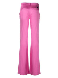 flared satin trousers deep pink satin finish belt loops front button and zip fastening two rear welt pockets flared Made in Italy Composition Polyester 98%, Spandex/Elastane 2% Washing instructions Dry Clean Only