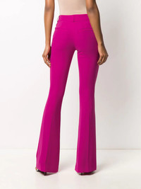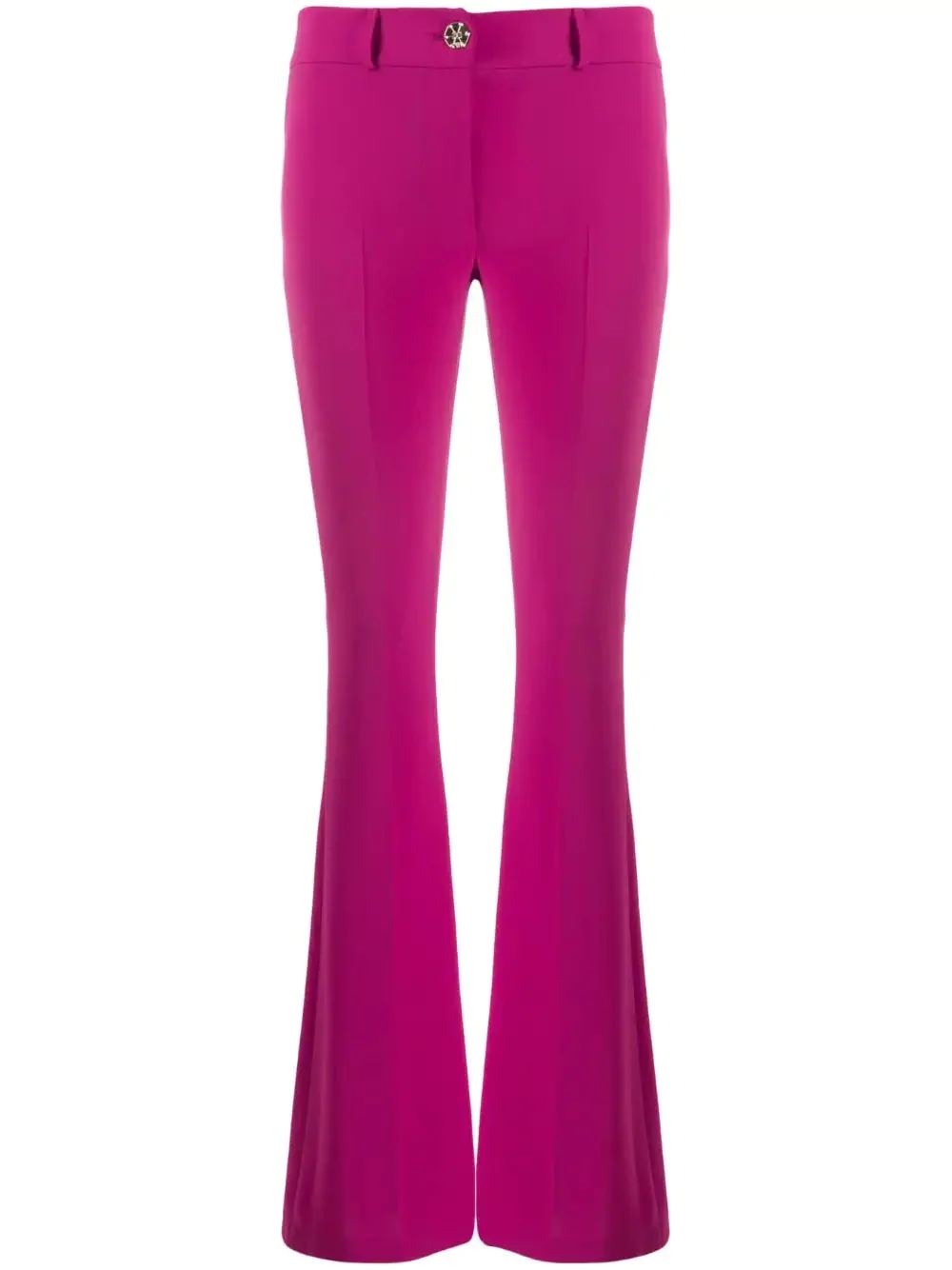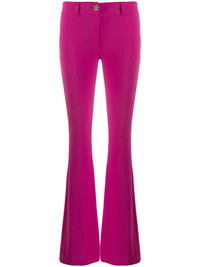 flared trousers Walk into the office in style and grace with these pink flared trousers from Philipp Plein. Constructed with a fitted mid-waist, they'll create an elegant look anytime. Now, go. Show them who's the boss! Featuring a mid-rise, belt loops, a front button fastening, back pockets and a flared style. Made in Italy Composition Outer: Polyester 100% Lining: Acetate 60%, Viscose 40% SIZE & FIT Model measurements Height 5 ft 11 in(1.8 m) Bust/Chest 31.49 in(80 cm) Hips 35.82 in(91 cm) Waist 24.8 in(63 cm) FittingInformation This piece fits true to size. We recommend you get your regular size Designed to be fitted at the waist and through the thigh, loose from the knee Made with a mid-weight non-stretch fabric Washing instructions Dry Clean Only