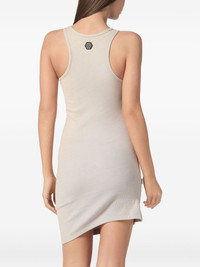 floral-embellishment ribbed mini dress Highlights - Light grey - Crew neck - Sleeveless - Ruched detailing - Draped detailing Imported Composition Cotton 95%, Elastane 5%