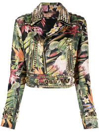 floral-print studded biker jacket