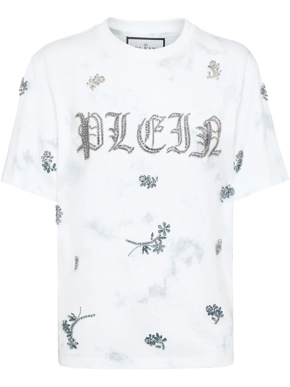Flowers t-shirt Highlights - White - Crew neck - Rhinestone embellishment - Short sleeves - Straight hem Imported Composition Cotton 100%