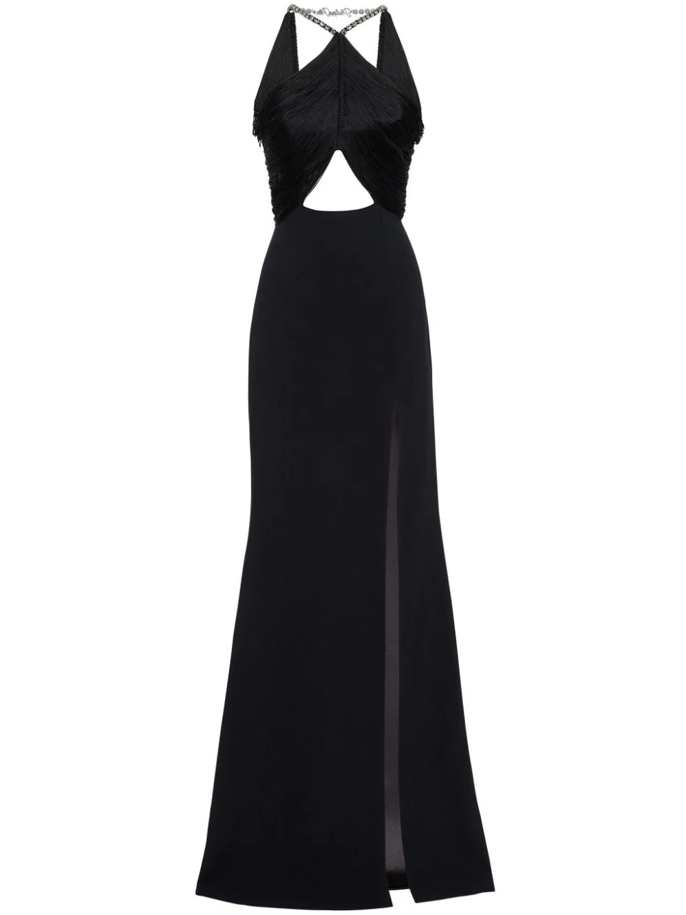 Fragnes dress Highlights - Black - Sleeveless - Cut-out detailing - Front slit - Rear button fastening - Long length Made In Italy Composition Acetate 100%, Polyamide 97%, Elastane 3%