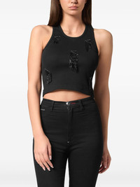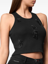 fringed tank top Highlights - Black - Crew neck - Sleeveless - Straight hem - Cropped Imported Composition Brass 100%, glass 100%, Cotton 95%, Elastane 5%