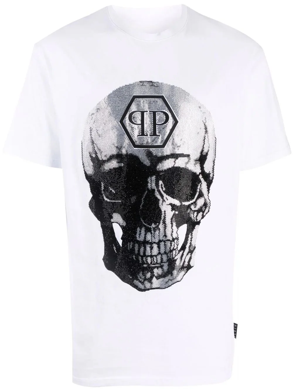 gem-embellished skull logo-graphic T-shirt Unisex in design, Philipp Plein's soft cotton T-shirt is embellished with the brand's signature skull graphic with the label's initials printed at the forehead. Imported Composition Cotton 100% SIZE & FIT Model measurements Height 5 ft 10 in(1.79 m) Bust/Chest 31.49 in(80 cm) Hips 35.03 in(89 cm) Waist 24.4 in(62 cm) FittingInformation This piece is unisex. Please take care when selecting your size Cut for a relaxed fit for both men and women Made with a mid-weight fabric Washing instructions Hand Wash
