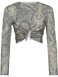 glass crystal embellishment T-shirt Highlights - Grey - Glass crystal embellishment - Snakeskin effect - Cut-out detailing Imported Composition Glass Fiber 100%, Polyester 95%, Spandex/Elastane 5%