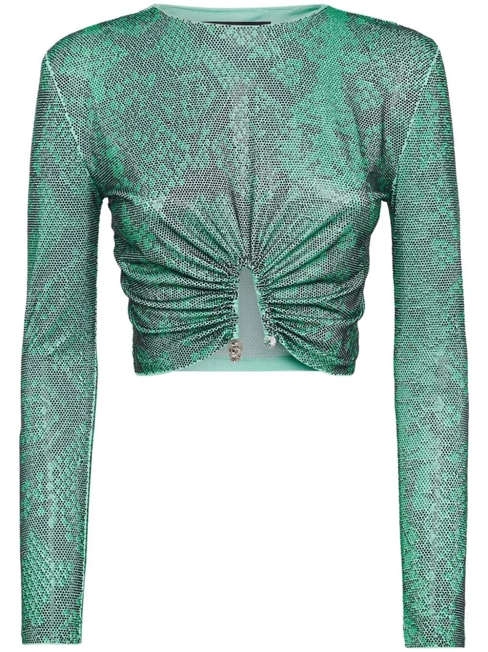 glass crystal embellishment T-shirt Highlights - Turquoise blue-green - Glass crystal embellishment - Snakeskin effect - Cut-out detailing - Cropped Imported Composition Glass Fiber 100%, Polyester 95%, Spandex/Elastane 5%