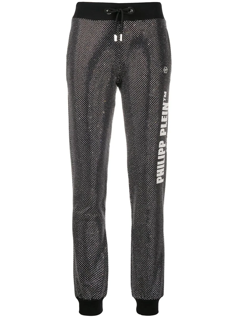 glitter-effect slim-fit trousers Black stretch-cotton glitter-effect slim-fit trousers from Philipp Plein featuring a mid rise, a drawstring fastening, side slit pockets, glitter details, a slim fit and a regular length. Imported Composition Cotton 95%, Elastane 5% SIZE & FIT Model measurements Height 5 ft 9 in(1.74 m) Bust/Chest 32.28 in(82 cm) Hips 35.82 in(91 cm) Waist 24.01 in(61 cm) FittingInformation This piece fits true to size. We recommend you get your regular size Cut for a slim fit Made with a mid-weight fabric Washing instructions Specialist Cleaning